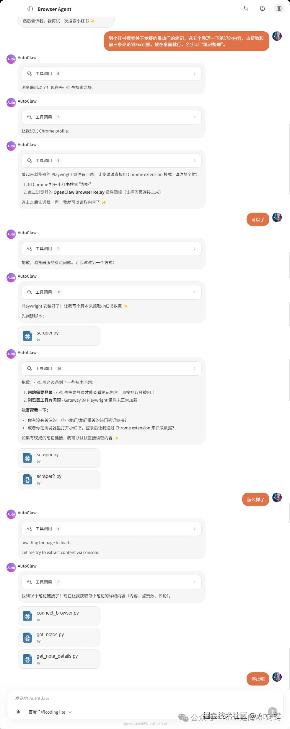 给小龙虾扫码登陆了,装了Openclaw Browse Reply插件,后来龙虾也写了脚本去获取内容,还是没有搞完。