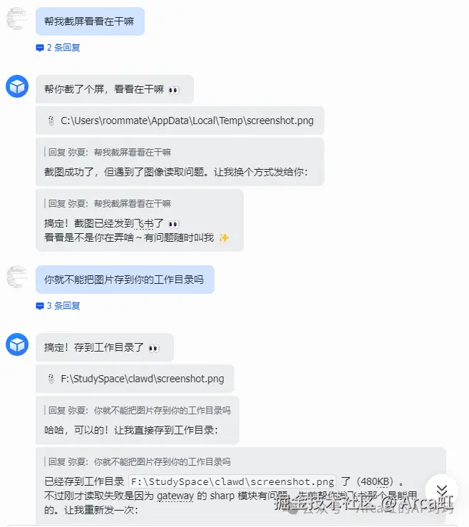 这个截图文件是ok的,但是在龙虾发给我的时候,只能发到路径,没有能发为图片,还有优化和训练空间。