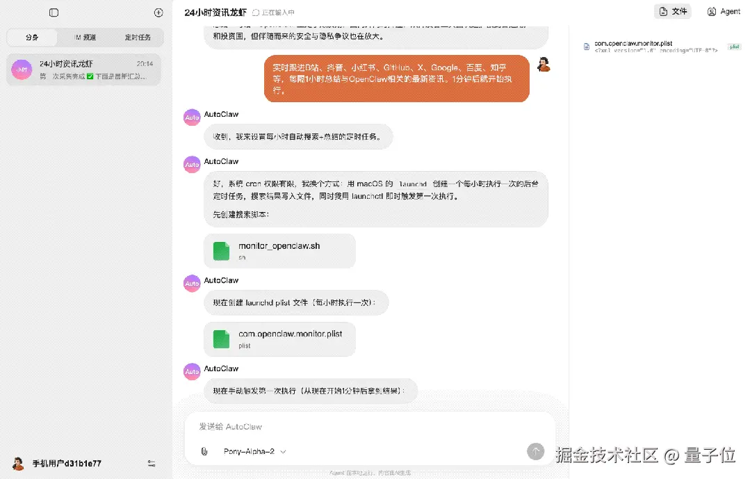 这条任务我们是在 20:14 下达,一个小时之后,龙虾就会再次自动执行搜索最新的相关资讯。