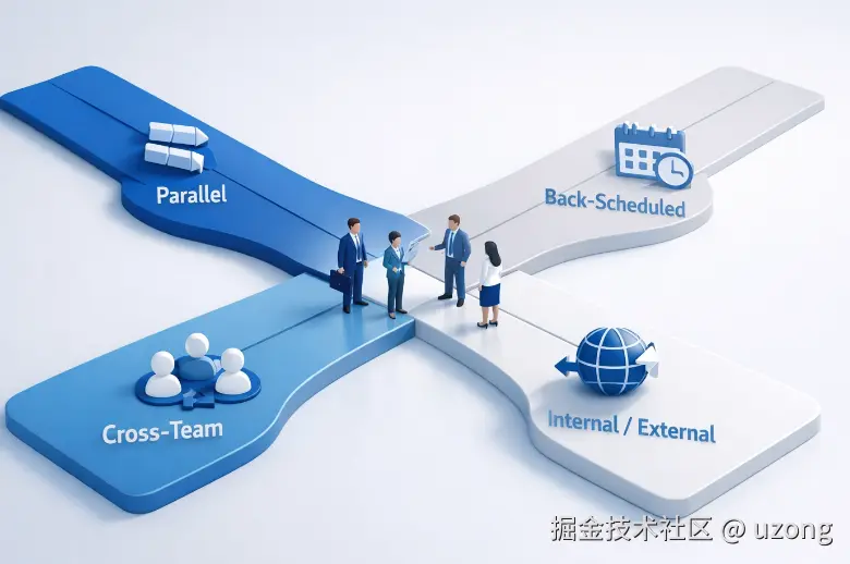 外部团队、第三方合作方,是最不可控的因素,必须最早启动、最晚结束、预留最大 Buffer。不要等到最后一刻才找对方介入,那等于把项目命运交给运气。