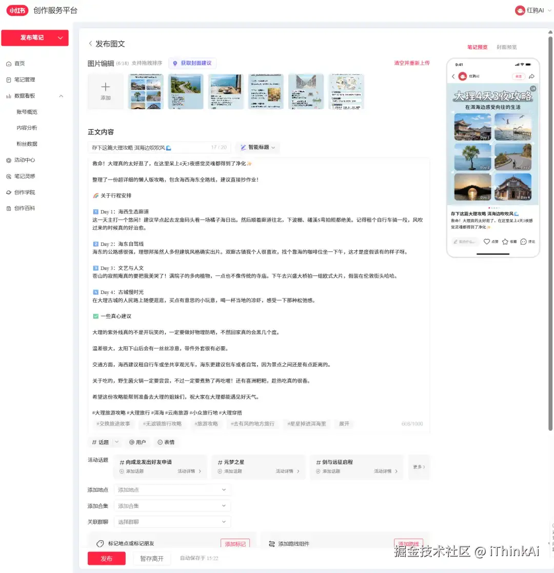 平台现在对内容实施分级管理,纯 AI 生成的痕迹太重,流量会被直接砍掉 30%。但如果你能用 AI 辅助,加上人工的真实经历修改,反而能获得额外的曝光奖励。