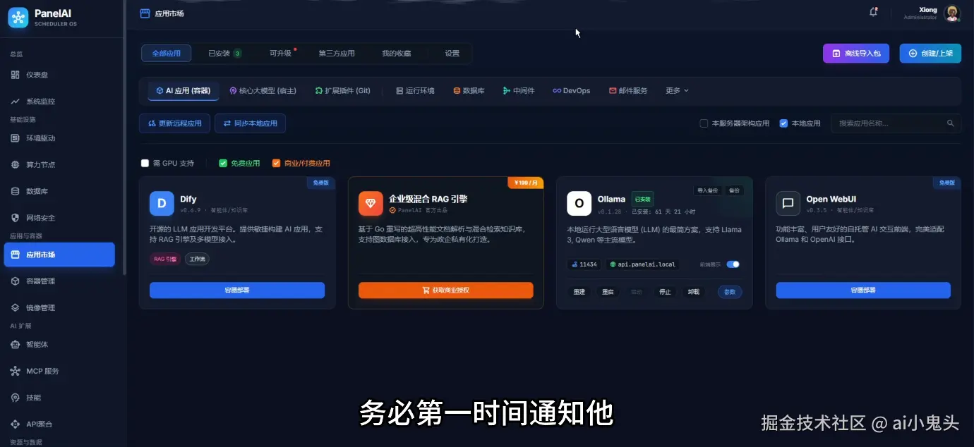真实场景举例: 现在最火的OpenClaw(小龙虾),用PanelAI部署到自家服务器,团队/客户填API就能随便烧,电费都省了,还能开会员赚钱。