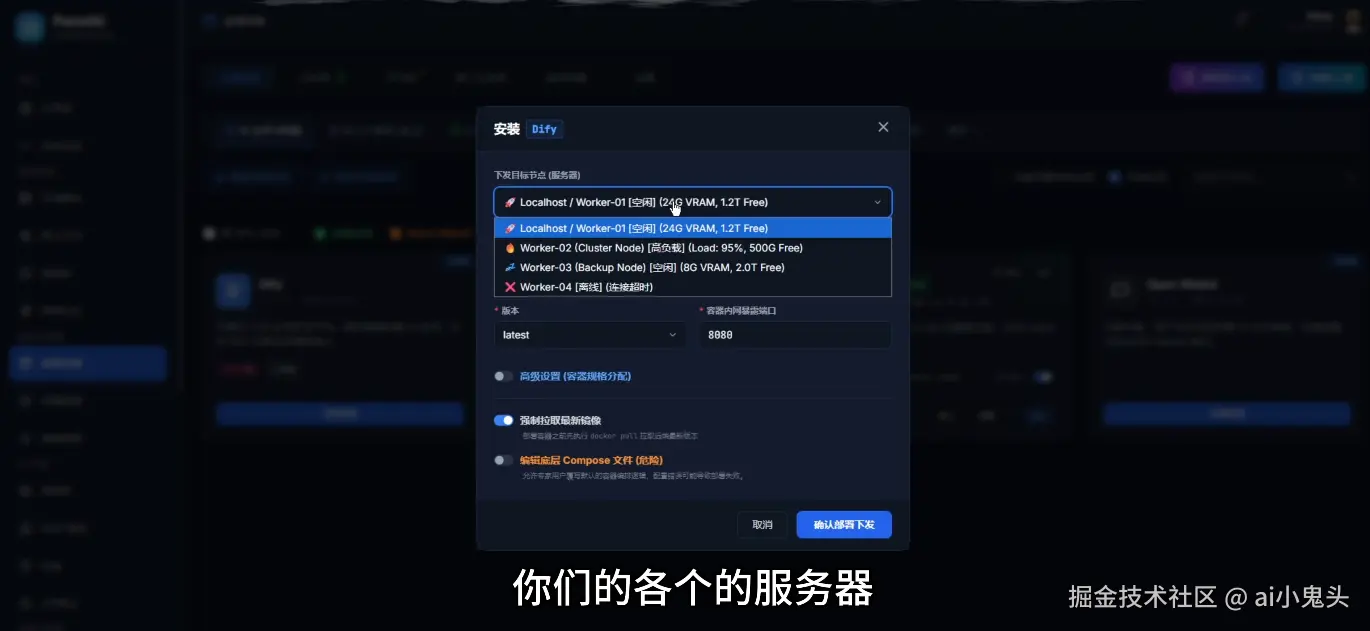 - 多节点调度:下拉选择服务器,一键分发模型/插件/工作流