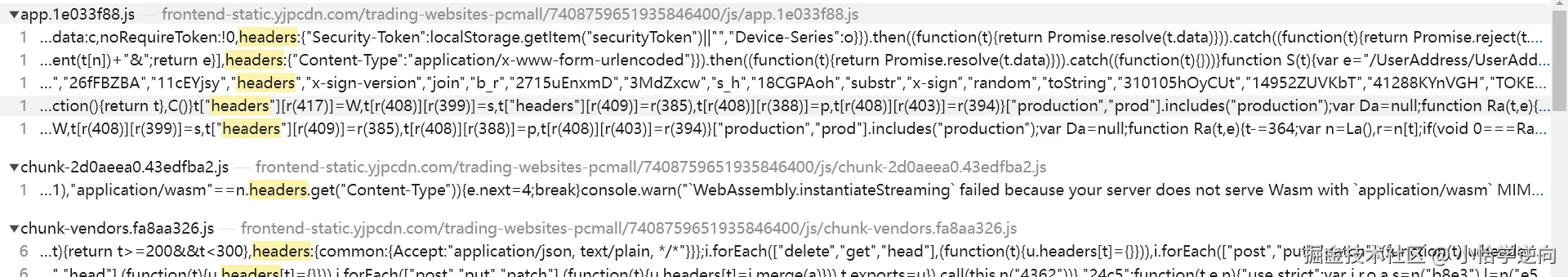 不请不楚,开始习惯性搜索 关键字 ,皆一无所获,突发奇想,既然与请求头有关,可以搜一下 headers 这个关键字