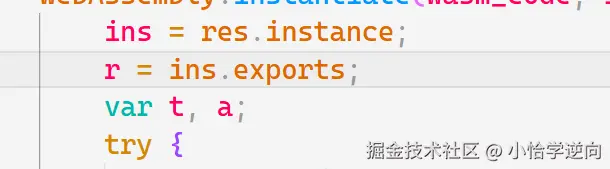 这里我就不讲 wasm 是什么了,感兴趣得可以去搜教程学习,这里我们要找到 r 的初始定义位置,从而顺藤摸瓜找到调用 wasm 文件的代码位置,可以搜关键字 r = ,找到一个可疑点