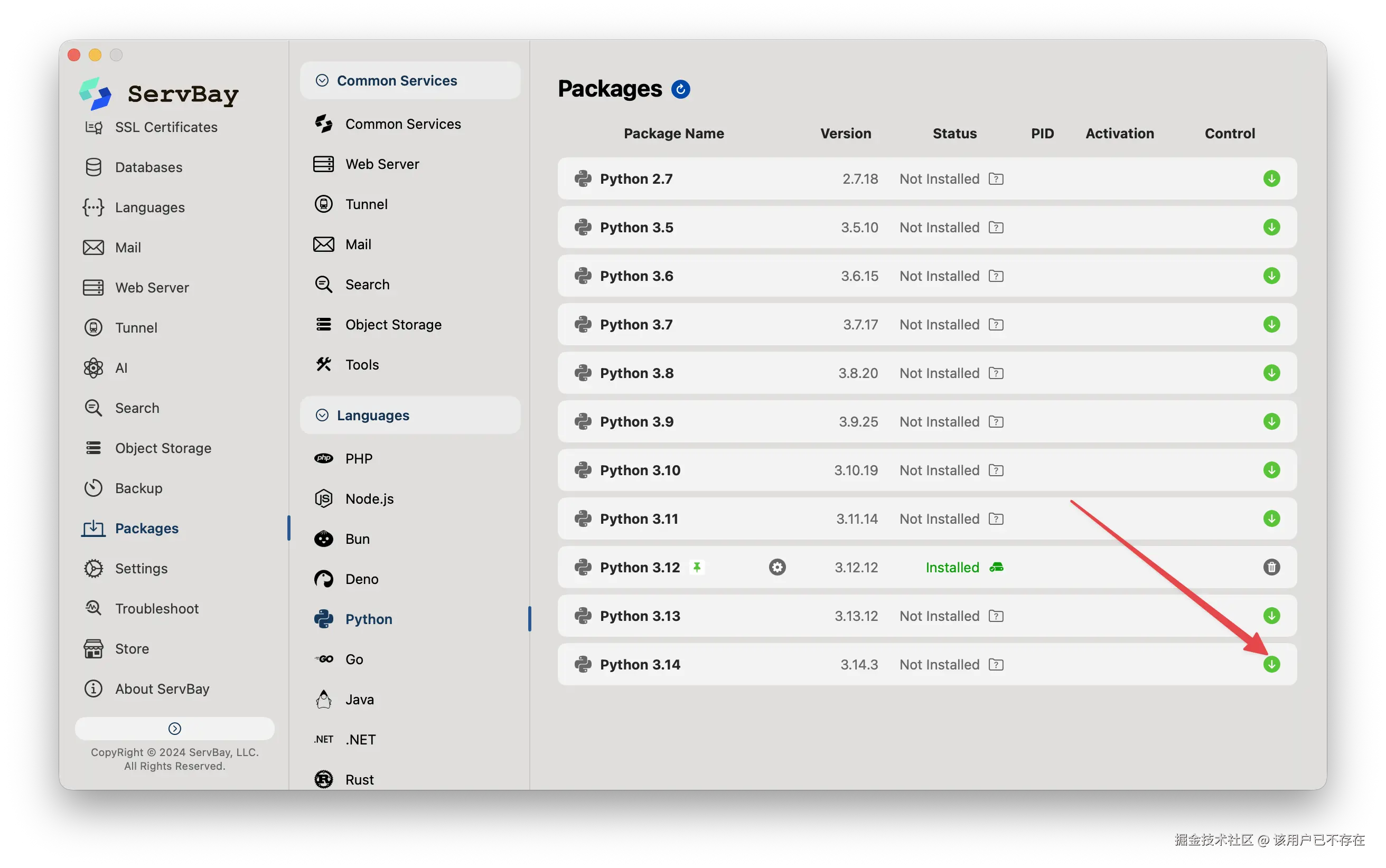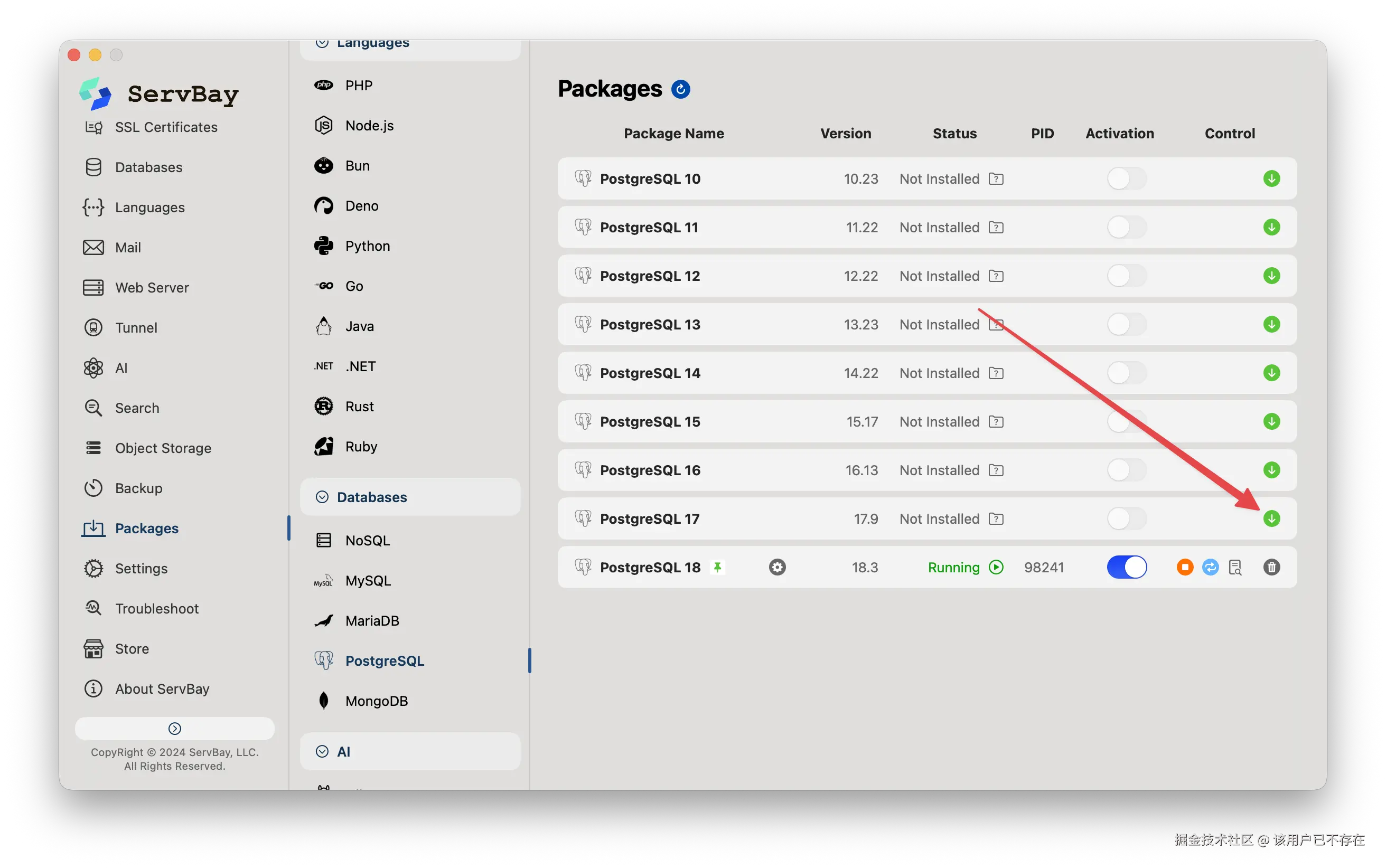 Nanobot需要 Python 3.10+环境以及 PostgreSQL 数据库,都可以通过 ServBay 来安装。
