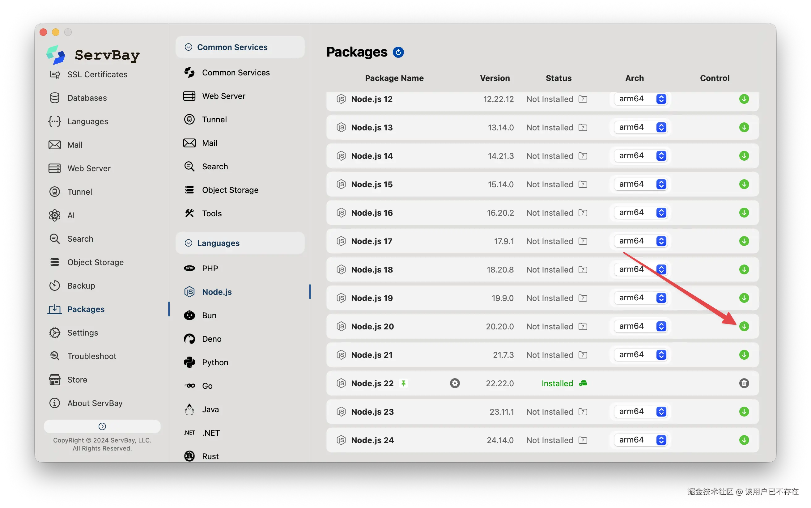- ServBay中下载好Node.js 20+环境。