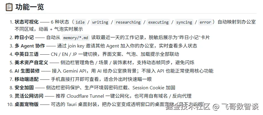 - 像素风UI展示agent状态