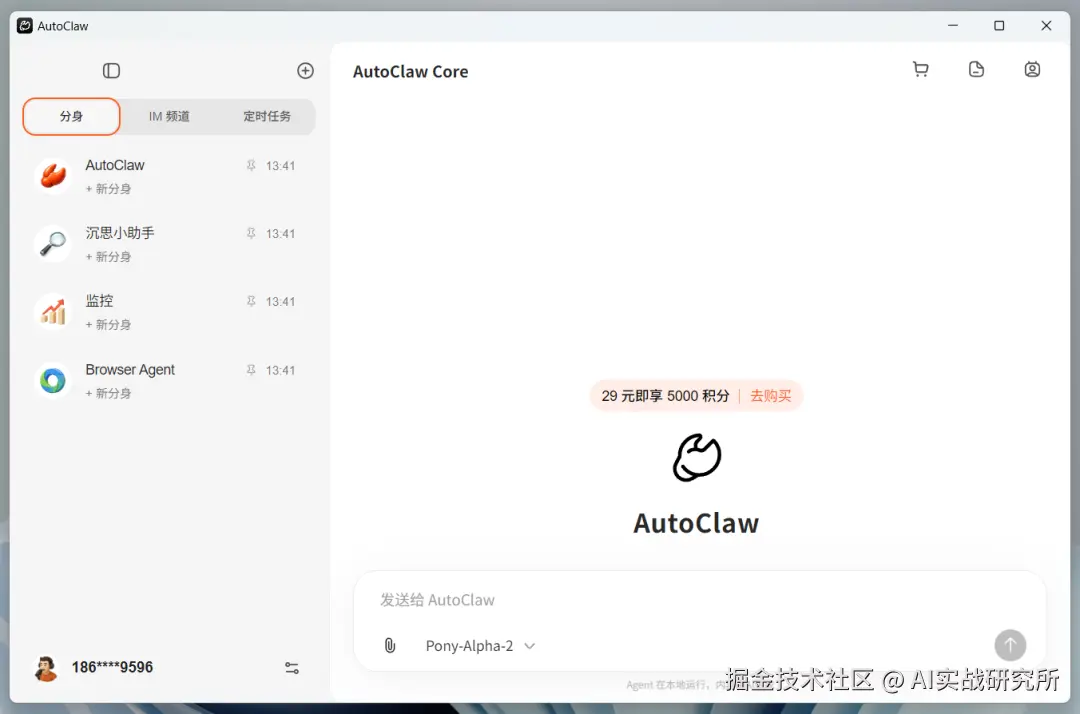 登录成功后,你将进入 AutoClaw 的主界面。