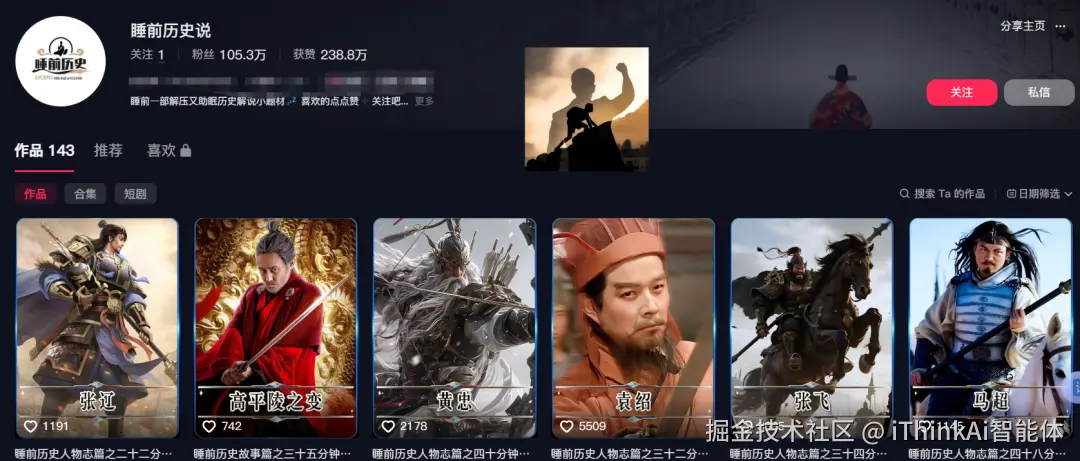 前几天刷视频,看到一个睡前历史说赛道的账号,发布了143个作品,狂揽238.8W粉丝!那么这么一个视频是怎么做的呢?自己花大量时间写文案、配音、剪辑?NO,今天教大家用Coze智能体工作流,一分钟搞定一个爆款睡前历史说视频。