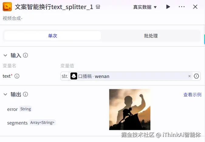 设定批量运行次数和逻辑,输入文案数组拆分,进行正文合成输出。