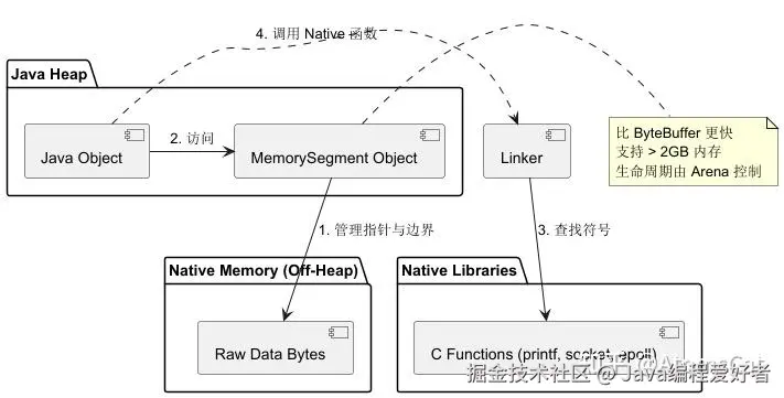 Arena,MemorySegment) 是未来,它安全且高效。 - 拥抱 Native:Java 不再是封闭的沙盒,通过