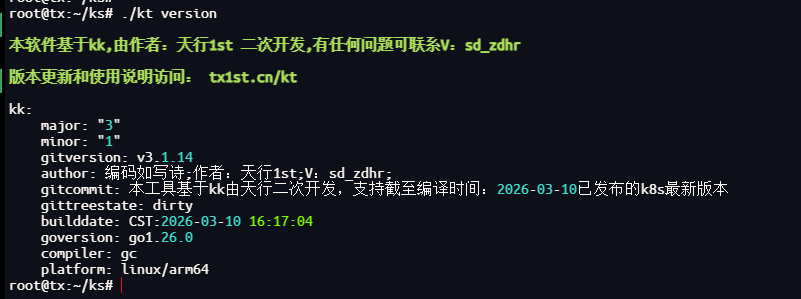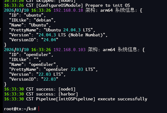 该命令kt会根据配置文件自动判断操作系统和架构以完成所有节点的初始化配置和依赖安装。