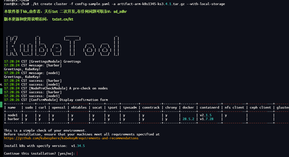 ./kt create cluster -f config-sample.yaml -a artifact-arm-k8s1345-ks3.4.1.tar.gz --with-local-storage