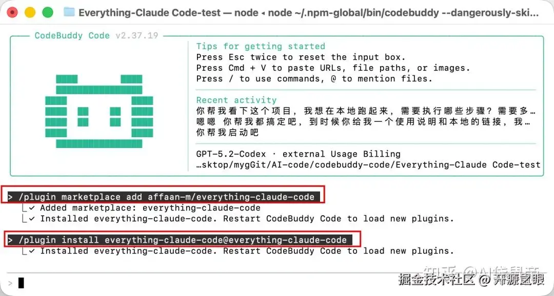 我试着在CodeBuddy Code里安装这个插件,本来以为会有兼容性问题,结果两条命令下去,直接跑通了:
