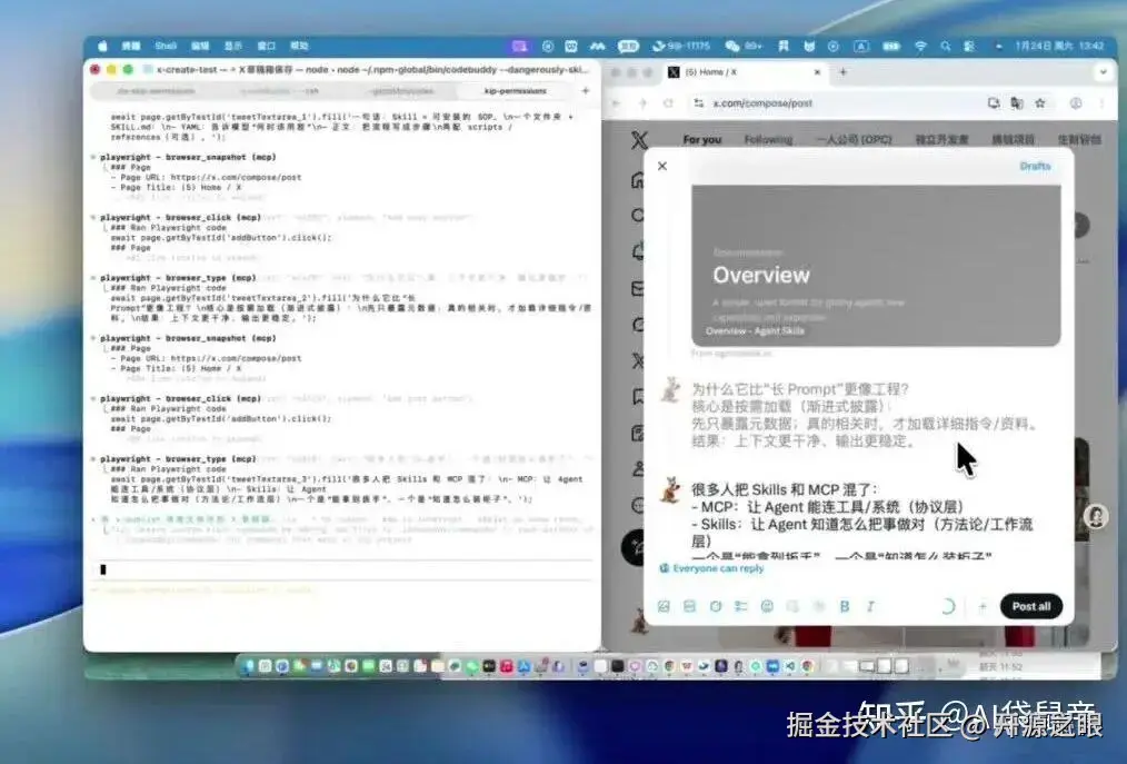 前几天我开源了一个自动写X推文,并发布到草稿箱的Agent Skills,叫x-skills,一些朋友反馈还不错,但还有很大优化空间。