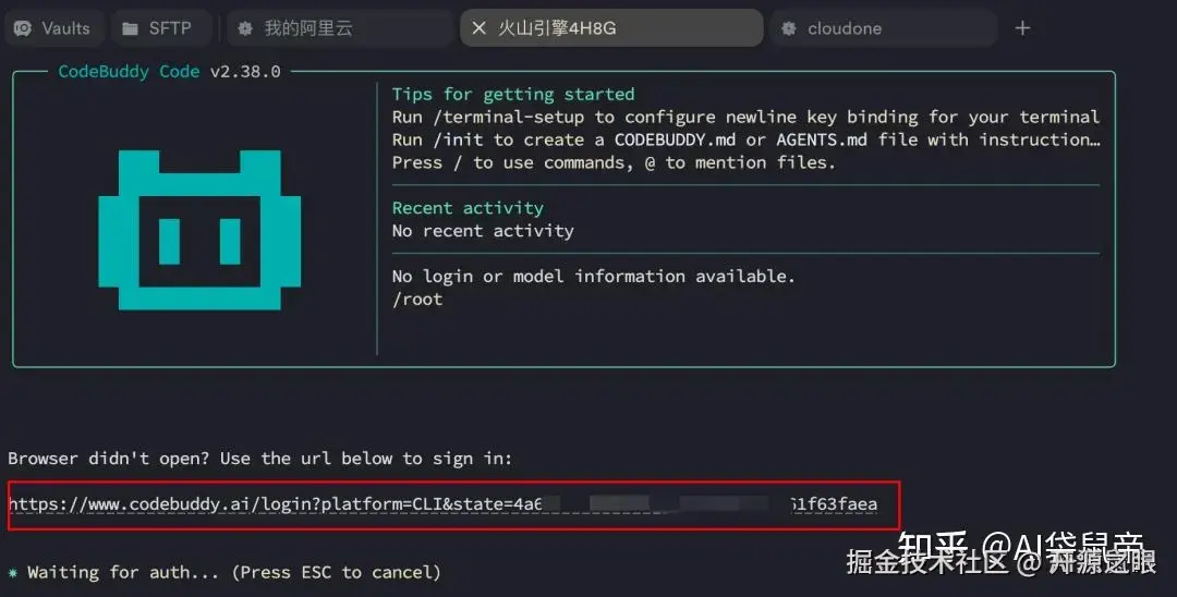 安装完成后,在终端输入 codebuddy 启动,按照提示完成身份验证就可以开始使用了。