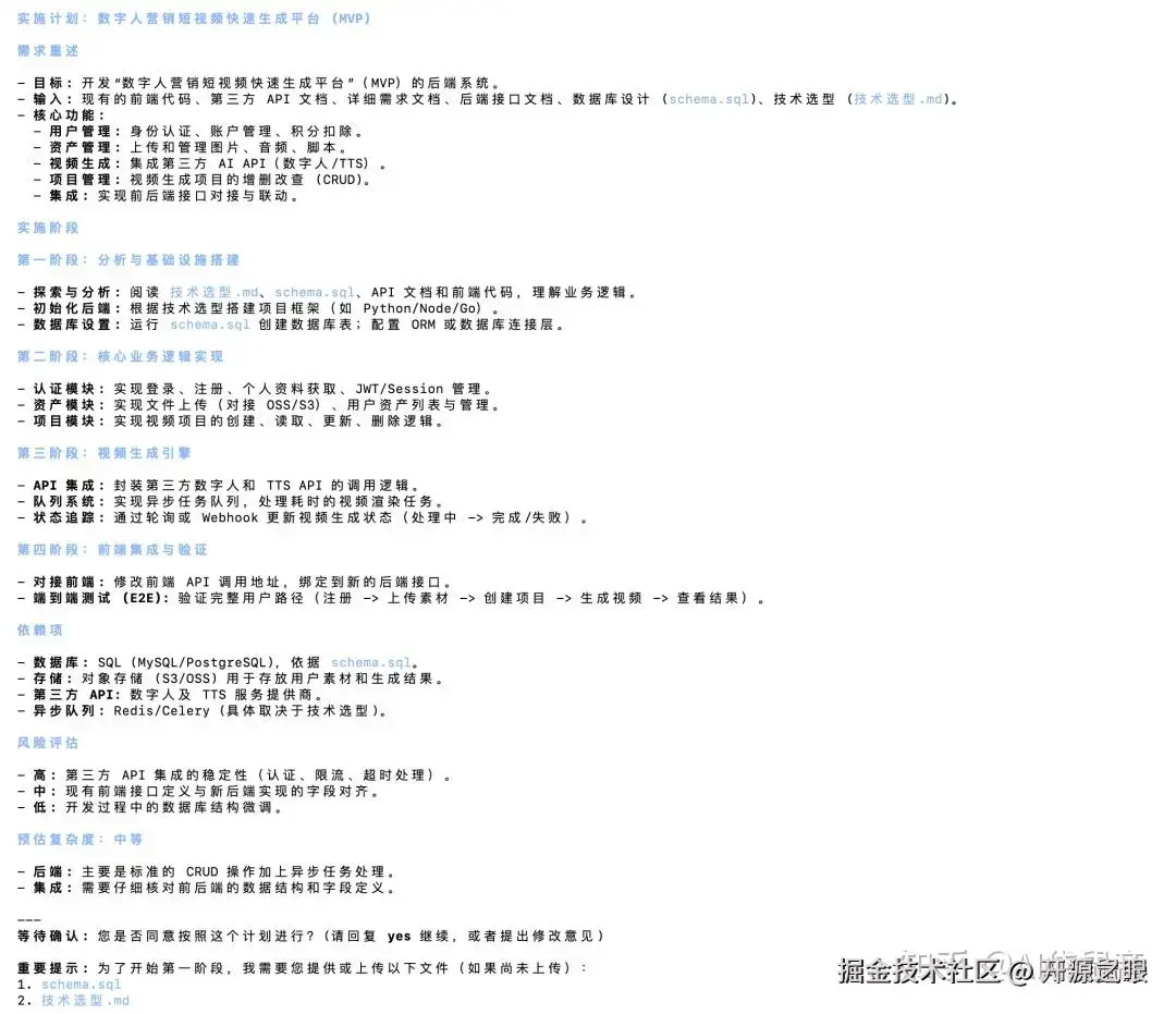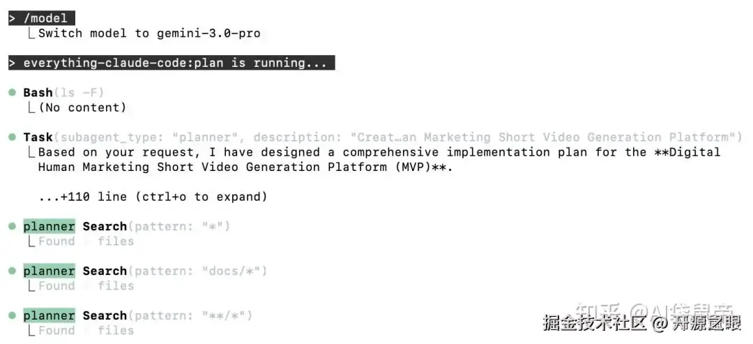 它立马启动了一个规划子代理,不再是闷头写代码,而是像一个技术负责人一样,先帮我拆解任务、分析依赖、制定步骤。