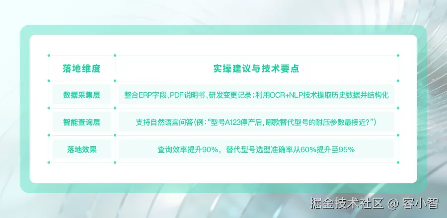 专家提示:落地时需建立“数据动态更新机制”,确保研发侧的参数变更能实时同步至Agent知识库,避免信息滞后。