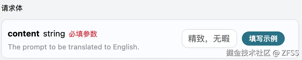 可以看到,结果中有一个 content 字段,里面包含了翻译后的英文描述词,它是对应中文描述词的翻译结果。