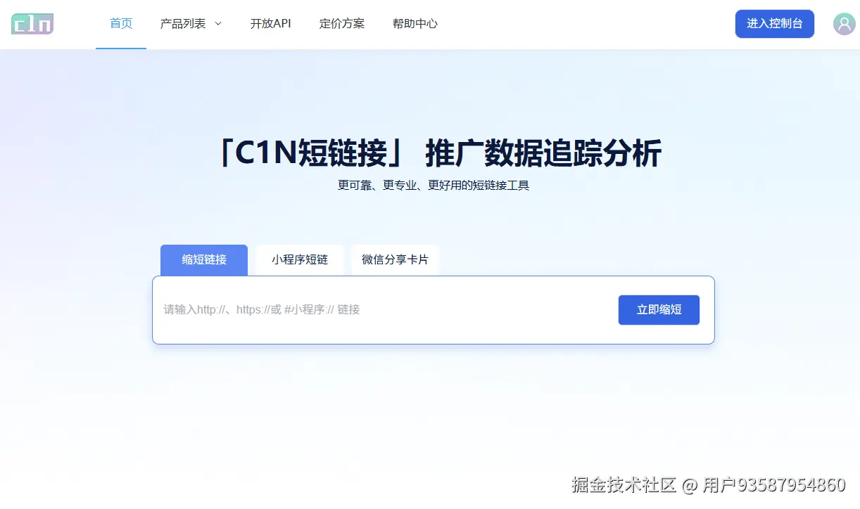 首先,你可以进入C1N短链接官网(c1n.cn),输入你想要缩短的原始链接(多个链接其一均可),点击【立即缩短】,即可得到短链接。