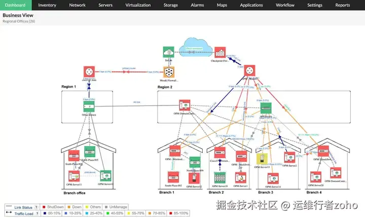 OpManager 凭借易用的网络拓扑图功能脱颖而出,能直观呈现企业网络基础设施。其核心亮点功能包括: