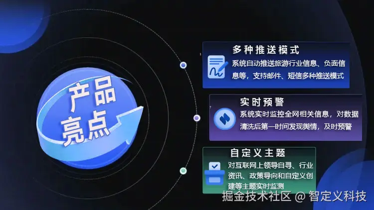- 描述:该模块根据用户设定的偏好,自动推送旅游行业信息、负面信息等关键舆情内容。系统支持邮件、短信等多种推送模式,确保用户及时接收最新舆情动态。通过个性化推送,用户能够高效获取所需信息,辅助决策和风险防范。