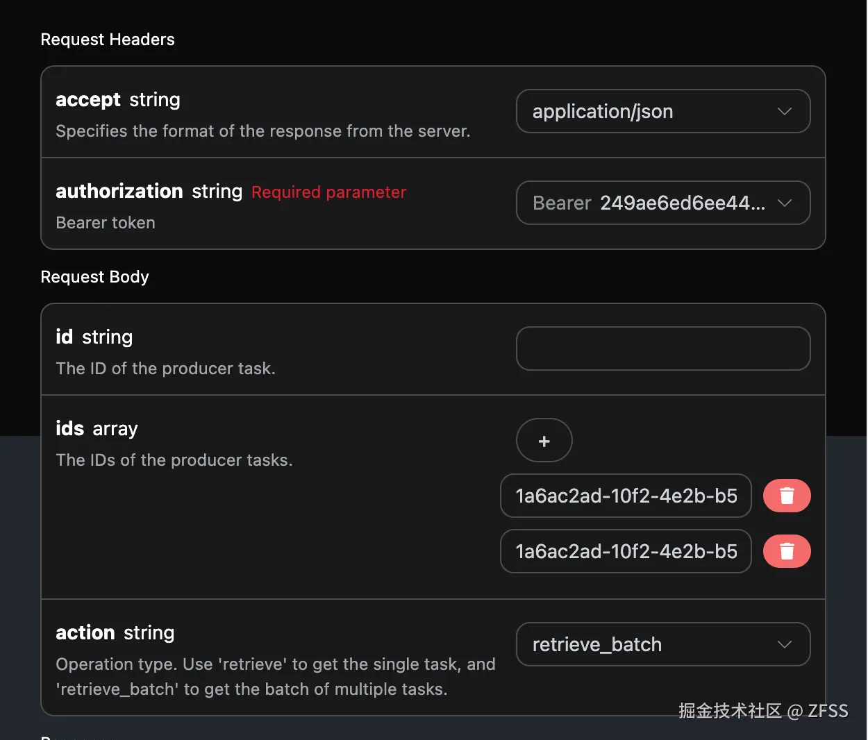 这是是针对多个任务ID来进行查询任务详情,与上面不同的是需要将action选中为retrieve_batch