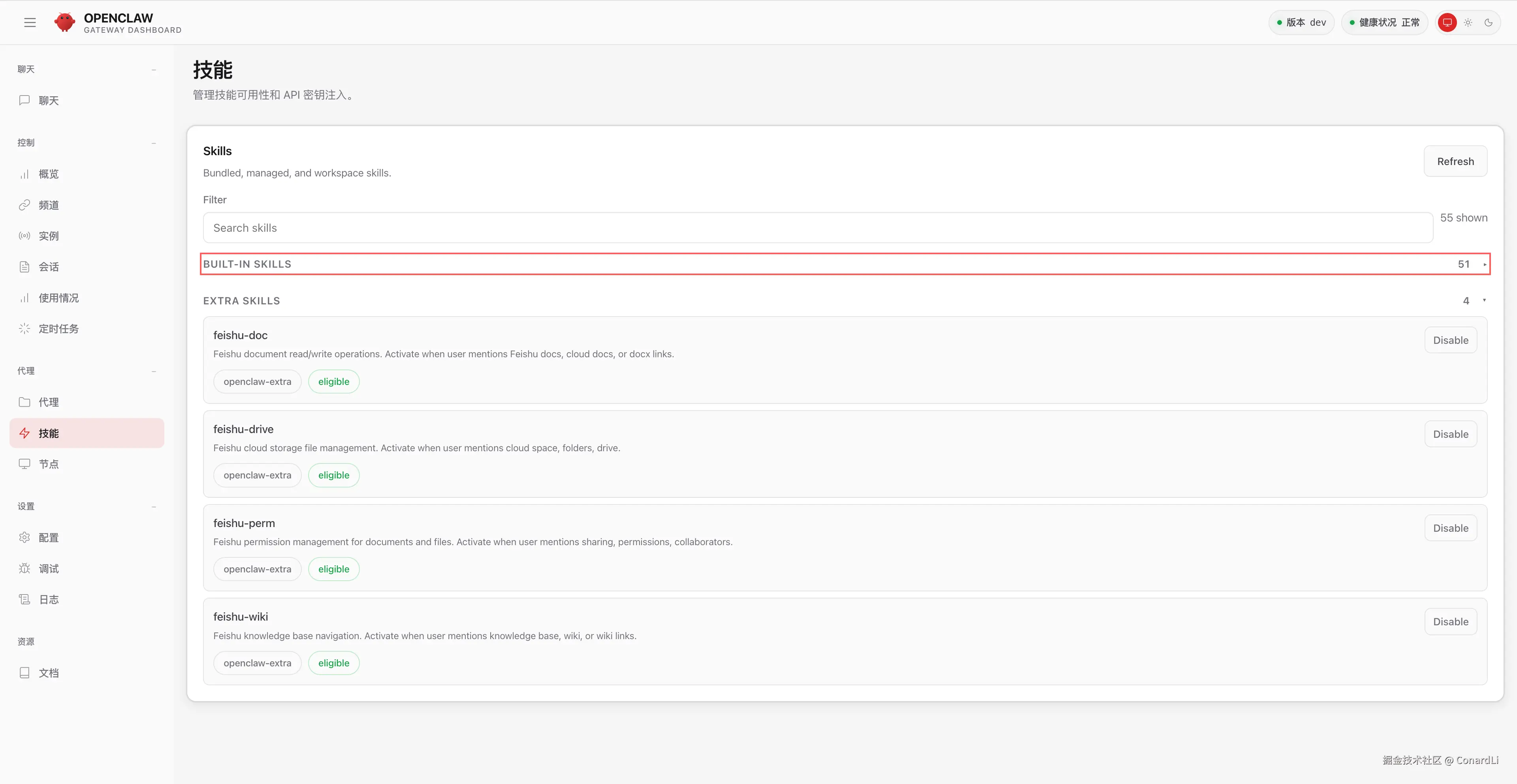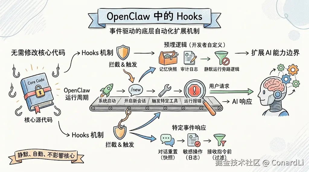 OpenClaw 通过 Skills 将复杂工作流封装成可重用模块。你可以编写或从社区(ClawHub)安装技能。