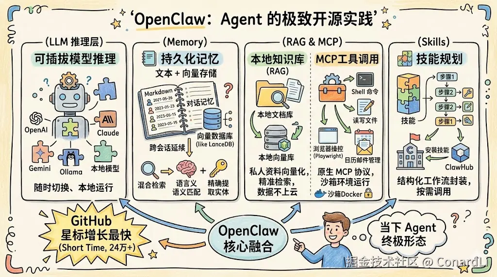 如果说前面的内容是 Agent 的理论框架,那么 OpenClaw,就是这套理论目前最极致、最疯狂的开源工程实践。
