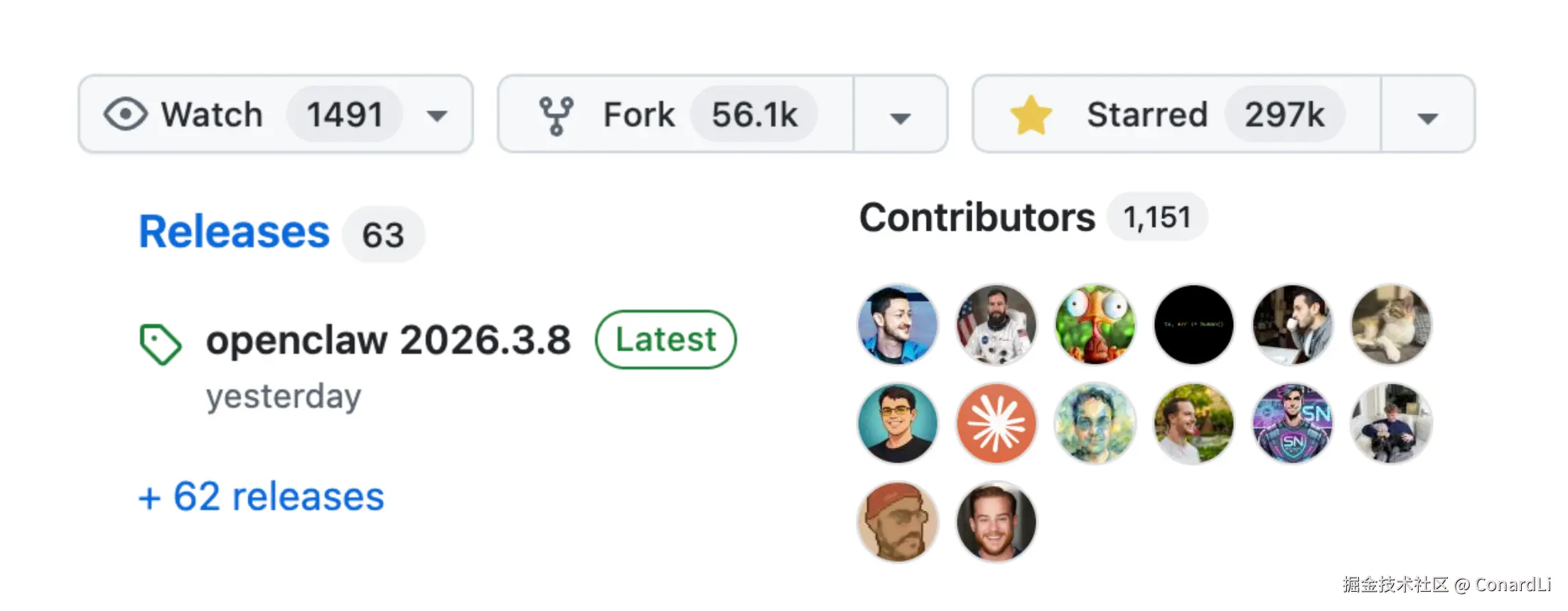 | 2026 年 3 月 10 日 | 297K Stars,56K Forks,1000+ 贡献者 |