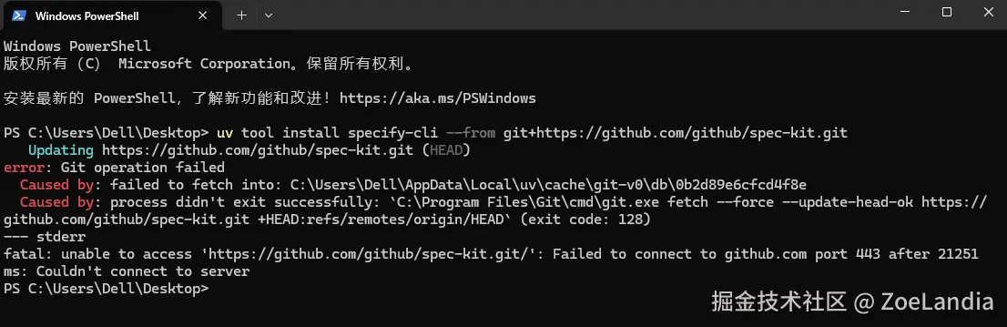 spec-kit 的安装通过 uv 工具完成,在 powershell 执行以下命令: