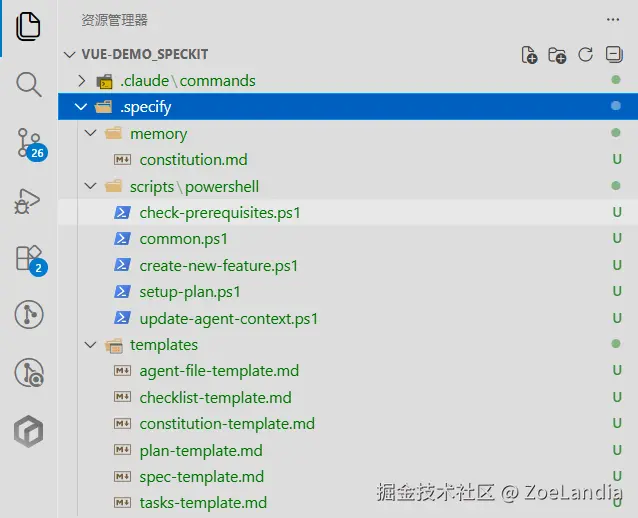 初始化完成后,项目目录中会生成 .specify 目录,包含以下结构: