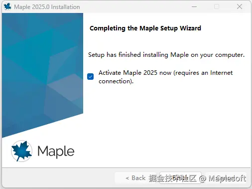 18. 安装完成。现在可以双击桌面上的Maple 2025快捷方式图标可以打开Maple软件。