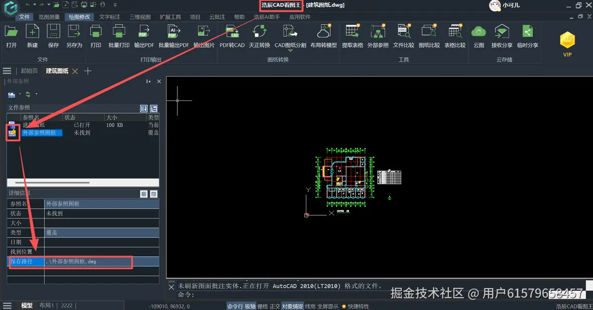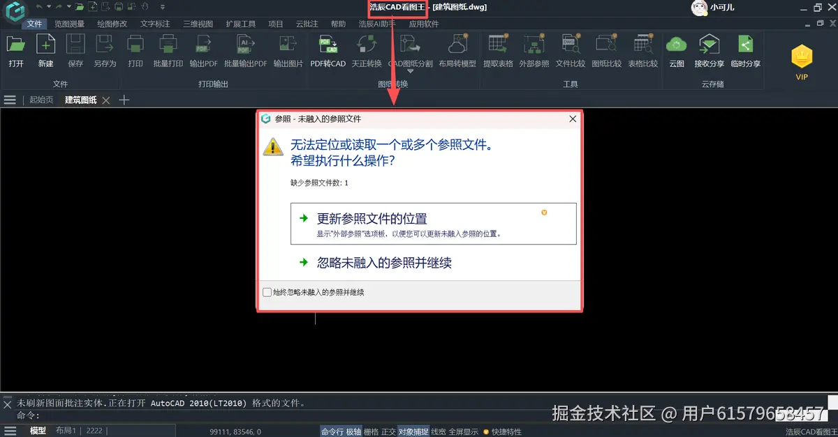 - 问题描述:同事通过微信发送了名为“建筑图纸.dwg”的文件,但打开时浩辰CAD看图王提示“无法定位或读取一个或多个参照文件”。