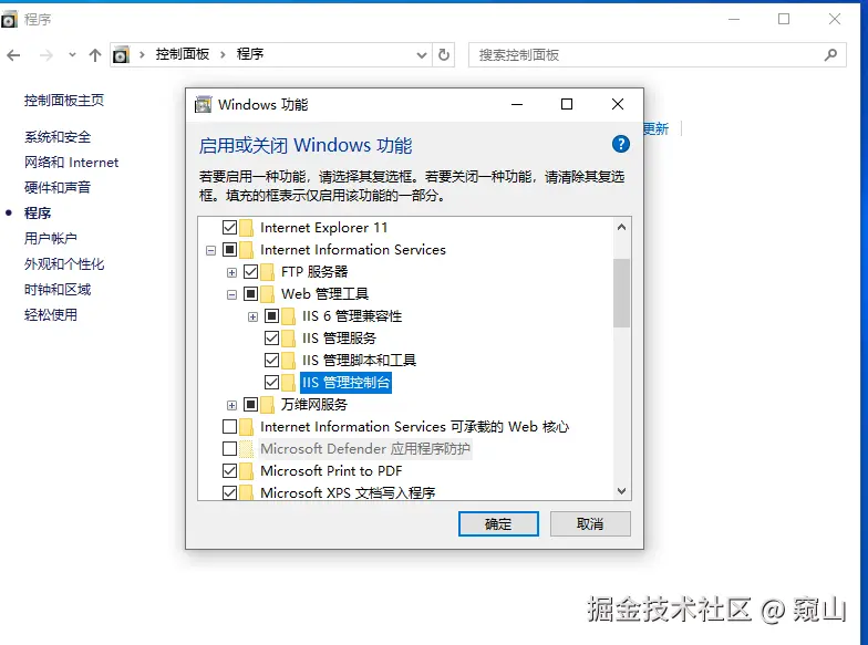 一、通过控制面板安装IIS