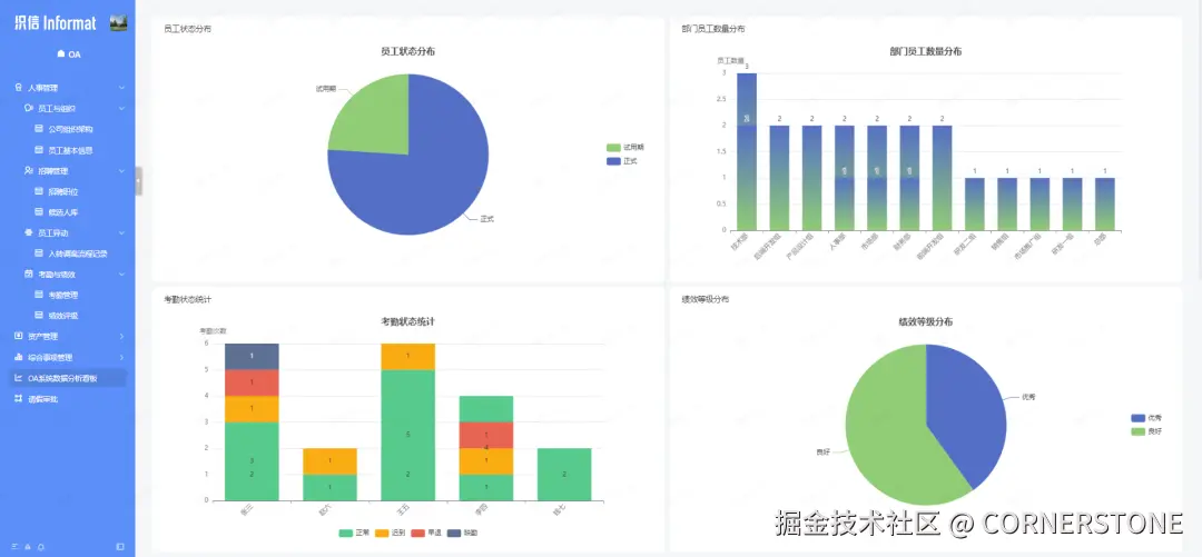 输入:“请基于OA系统数据,创建一套数据分析看板”。