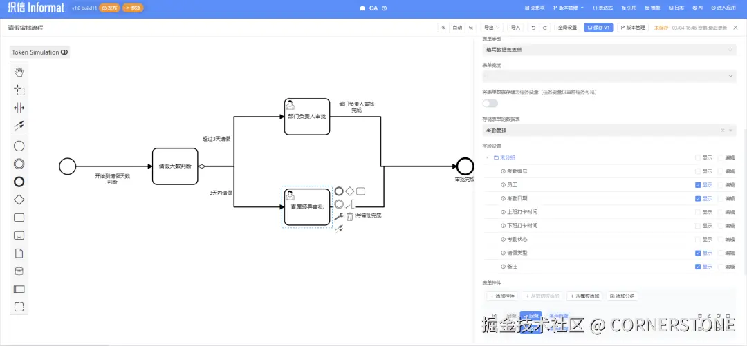 输入:“创建一个请假审批,自动设置3天内直属领导批、超过3天部门负责人批”。