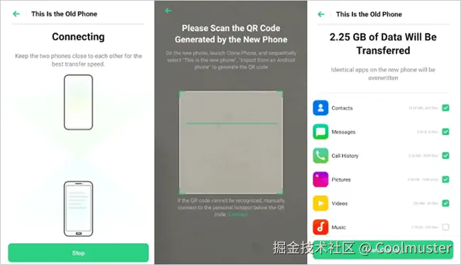 如果您想快速安全地在两部手机之间传输数据,使用专业的手机数据传输工具通常是最简便的解决方案。Coolmuster Mobile Transfer只需点击几下即可将各种类型的数据直接从一台Android设备传输到另一台设备。