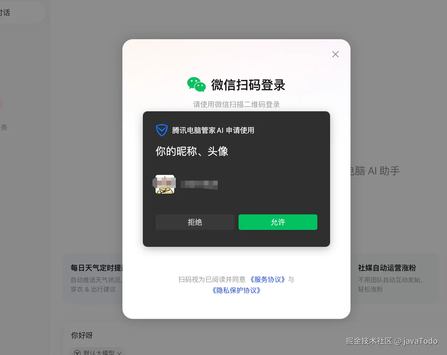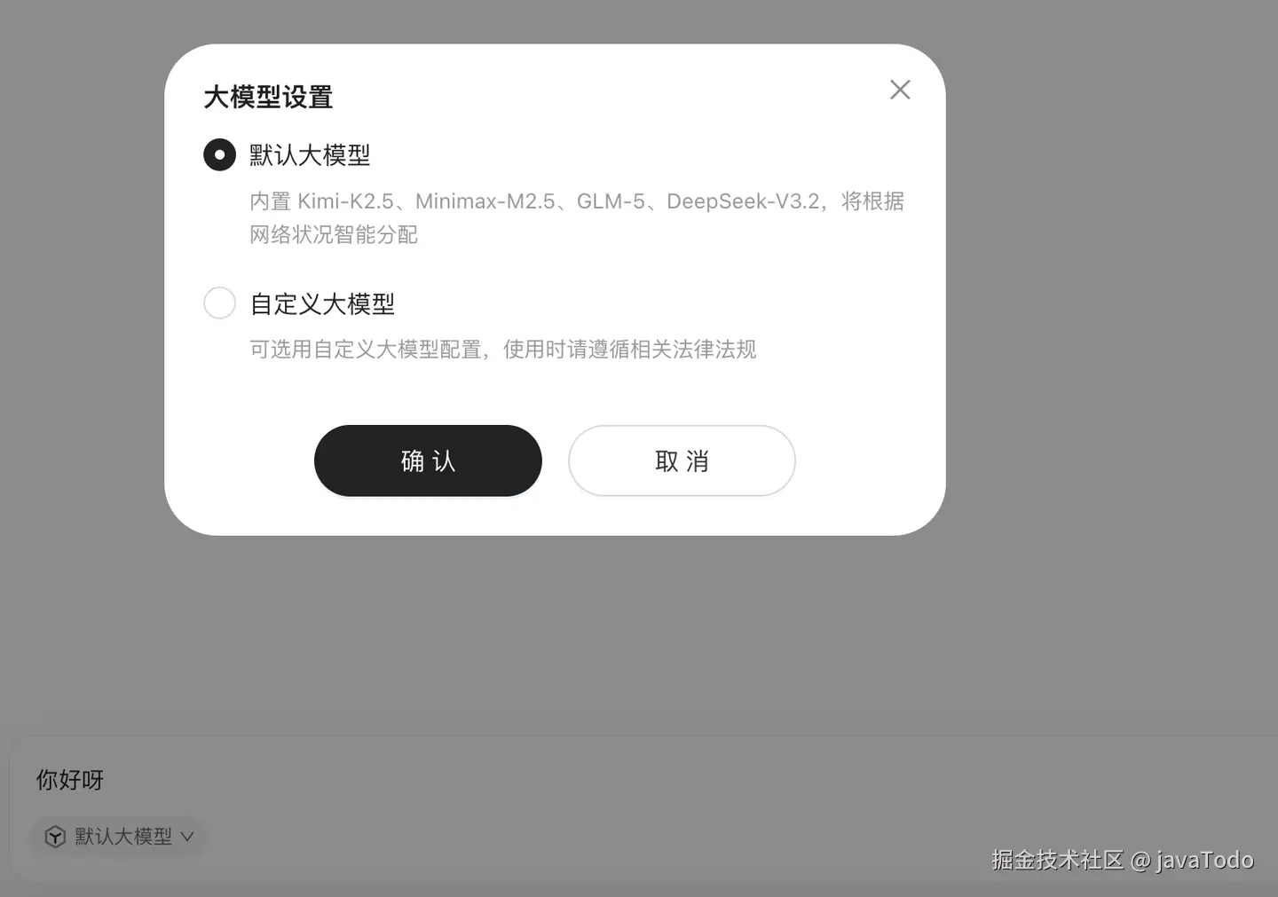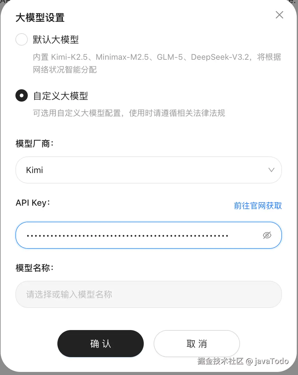 最后选择模型:用官方提供的大模型(token 由腾讯承担,目前免费),也可以接入自己的 API Key。