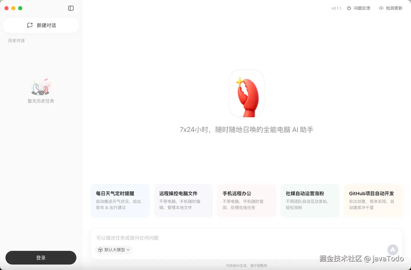 QClaw 的定位是”7×24 小时、随时随地召唤的全能电脑 AI 助手”。