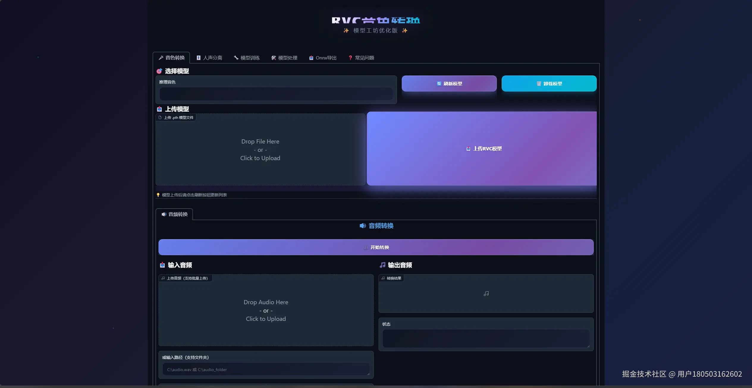 - 视觉体验全面焕新:采用更美观的界面设计、流畅的动态效果与舒适的色彩搭配,让模型加载、音频转换等每一步操作都更具仪式感,创作过程更愉悦。