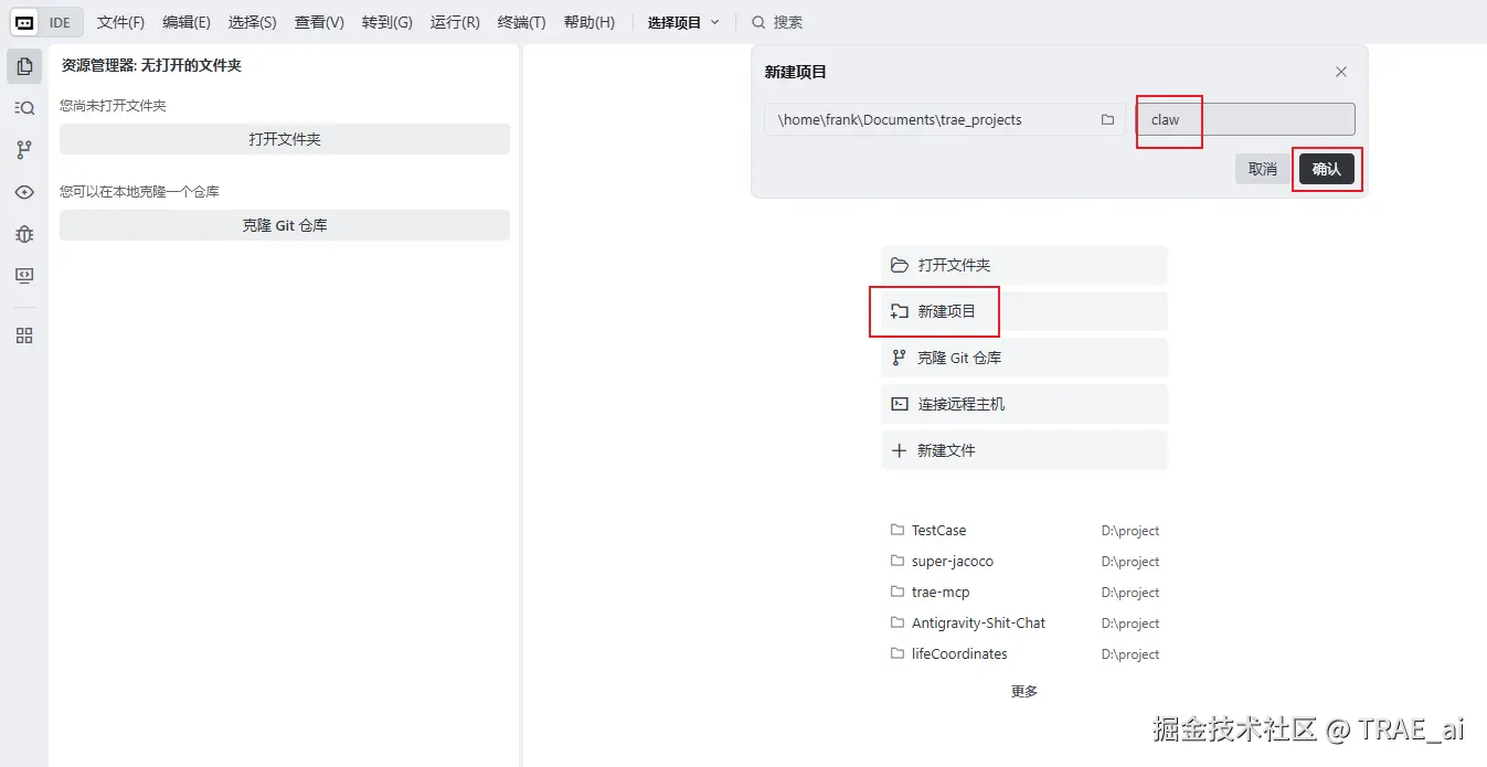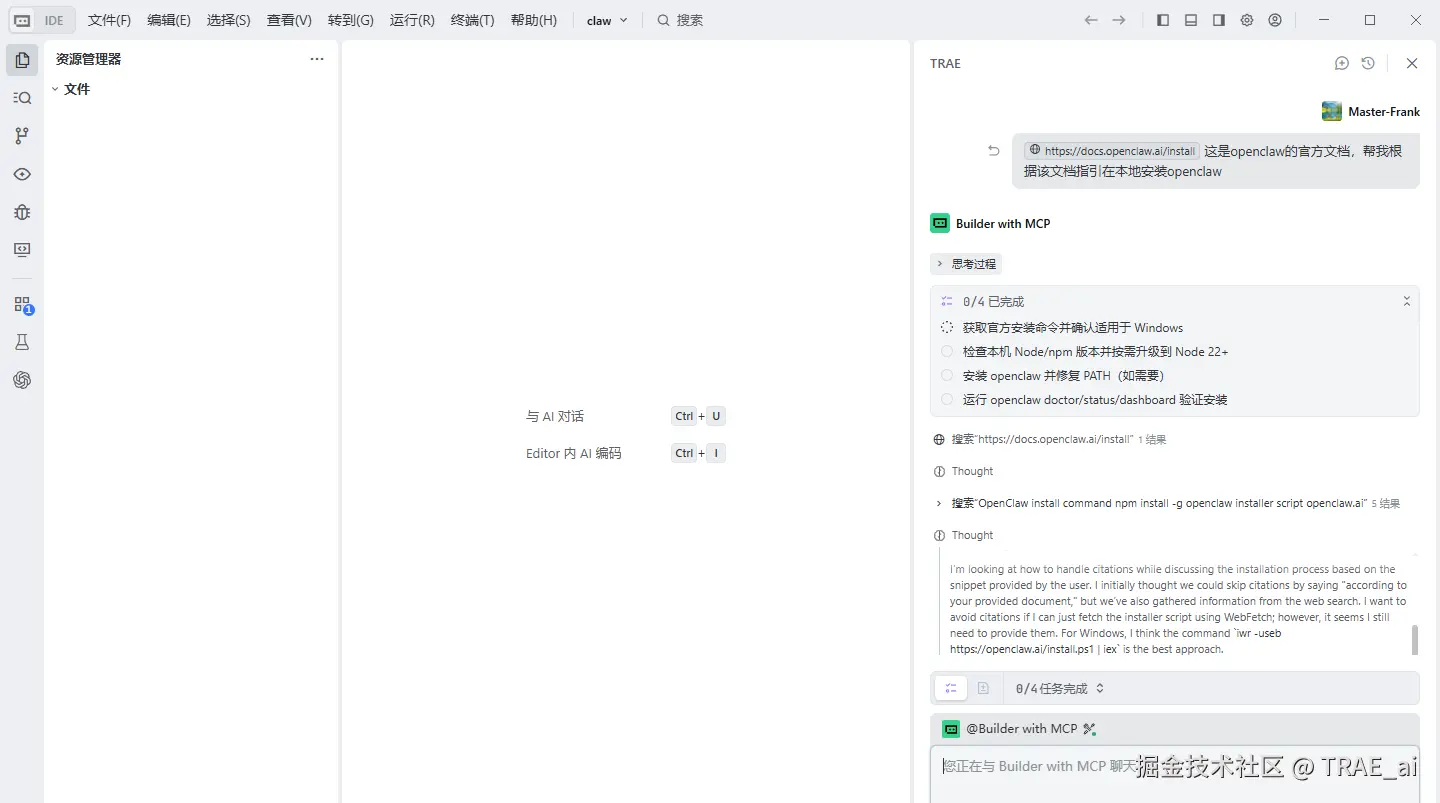 3. 在 TRAE 里安装 OpenClaw