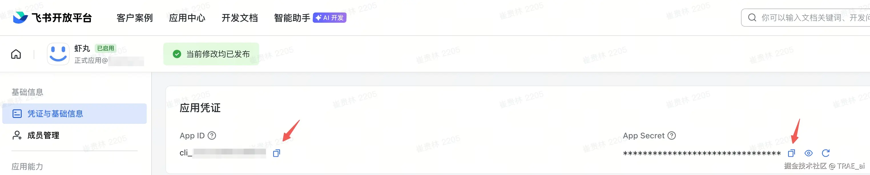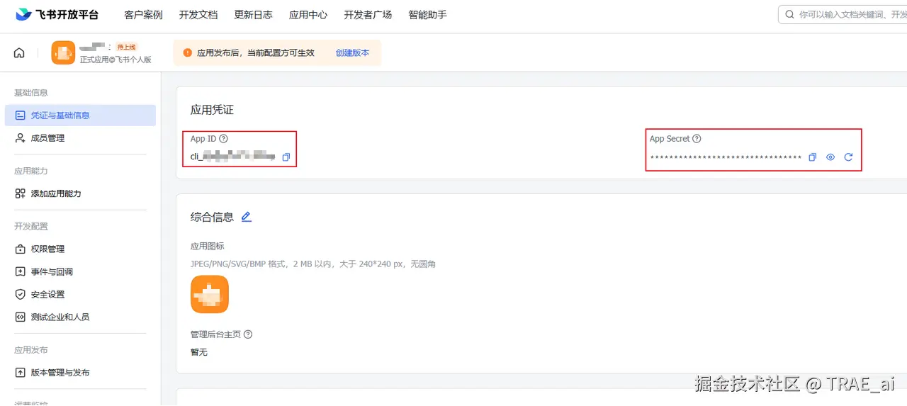 飞书应用的App ID是 「xxx」 ,App Secret是 「xxx」