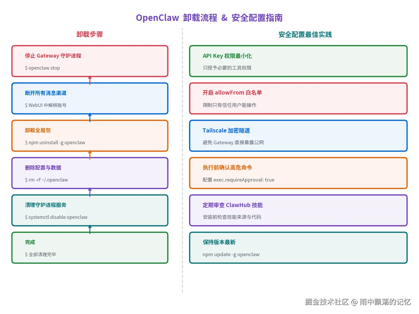 | 公网暴露 | Gateway 端口直接暴露互联网 | 使用 Tailscale,或 Nginx + IP 白名单 |