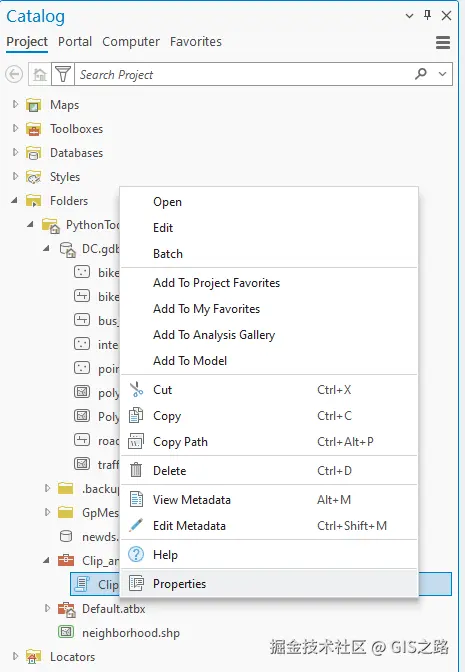 数据下载地址:https://learn.arcgis.com/zh-cn/projects/create-a-python-script-tool下载数据解压完成,将工程添加到地图,可在ArcGIS Pro目录窗口查看图层数据,存储在Transportation.gdb数据库中。