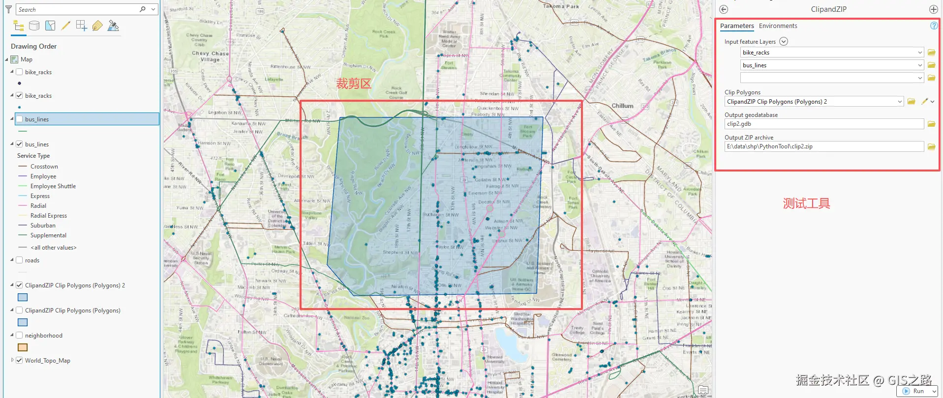 在代码框中,将 script_tool(param0, param1) 一行编辑为 ClipZip(param0, param1)