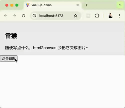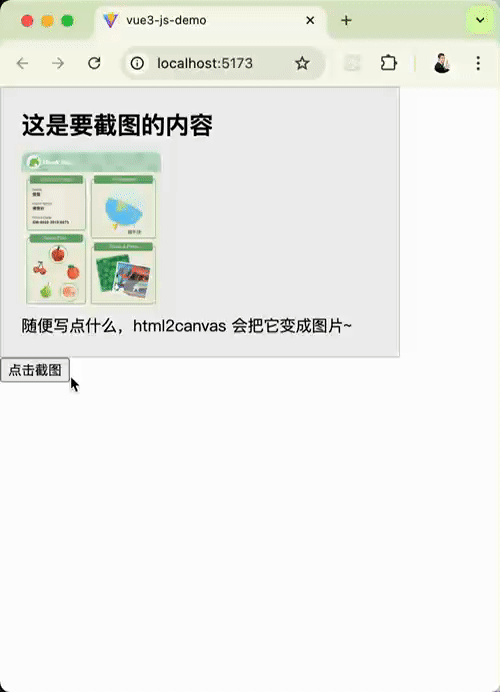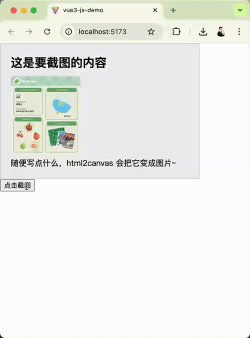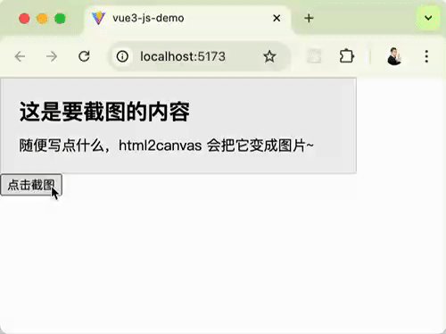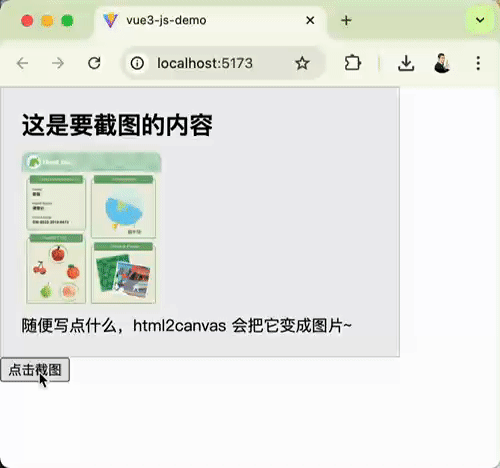 本文使用 Vite 创建 Vue3 项目,通过 Vue3 的语法来讲解。在其他框架使用 html2canvas 用法也是差不多的。