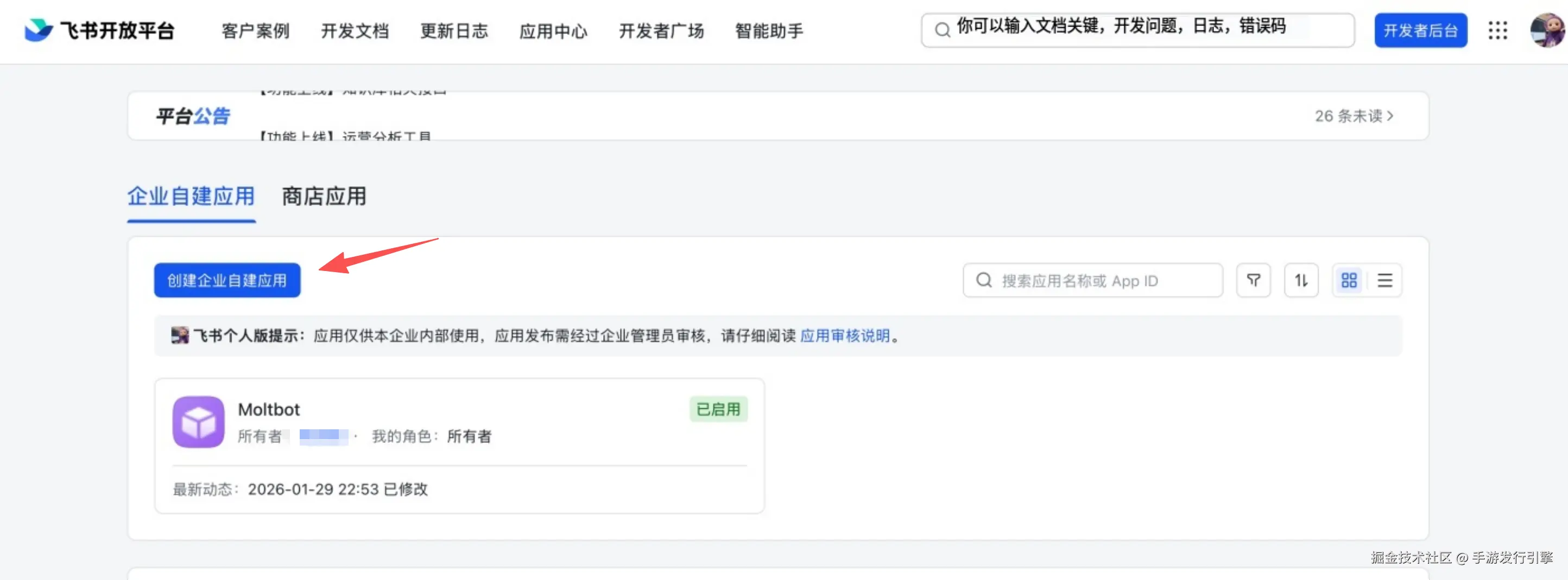 访问 开发者后台 - 飞书开放平台,使用飞书账号登录。