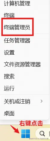 - 快捷键WIN+X(或者右键点击Windows图标),选择管理员终端。(以后打开终端的方式均为该操作)